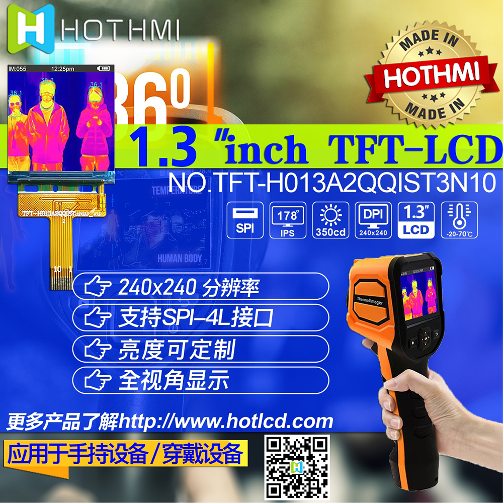 這款1.3寸TFT彩屏,非常適用于手持式紅外測溫槍顯示屏(紅外測溫儀顯示屏),支持SPI接口,具有尺寸方正、結構緊湊、高亮度、全視角、色彩豐富的特點(diǎn),顯示數據一目了然。