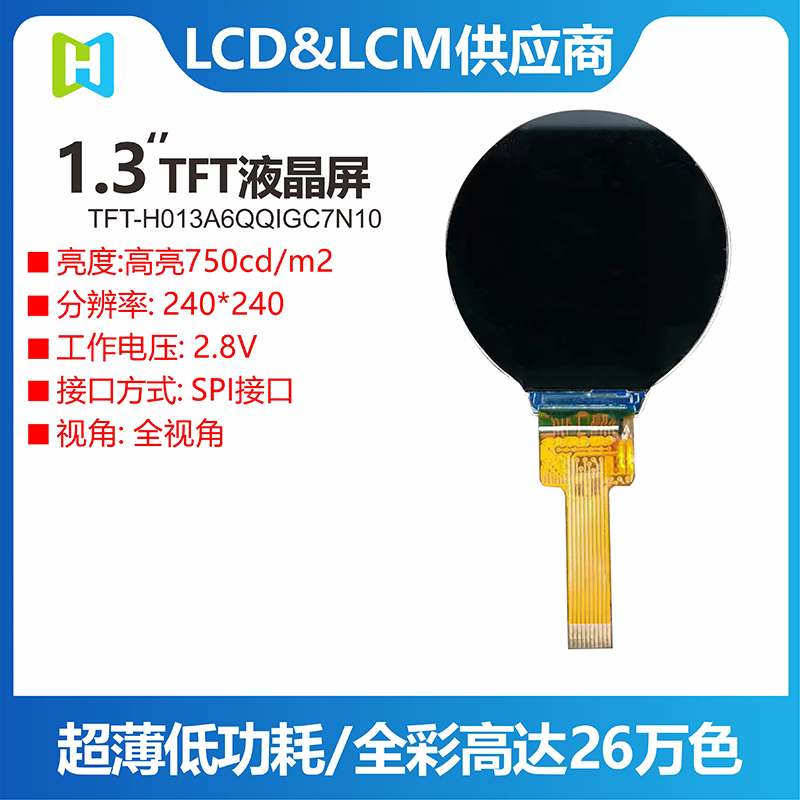 TFT-H013A6QQIGC7N10是一款直徑1.3寸圓形IPS TFT-LCD顯示器,分辨率240x240像素。此圓形TFT顯示器加上IPS面板,內建GC9A01驅動(dòng)IC,透過(guò)SPI接口進(jìn)行通信。
