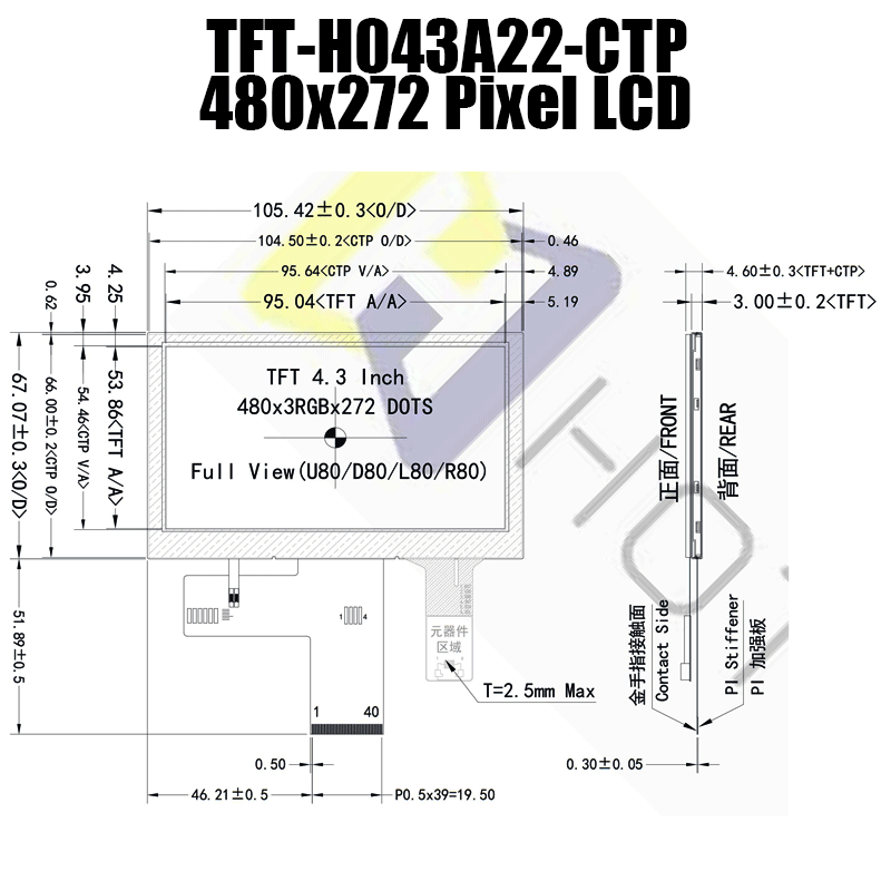 這款 480x272 陽(yáng)光下可讀 TFT 配備了強大的背光,可在包括直射陽(yáng)光在內的明亮照明條件下提供可視性。 具有SPI/MCU多接口和全視角的LCD顯示器。 這款 LCD 顯示器符合 RoHS 標準,具有 10 點(diǎn)多點(diǎn)觸控電容式觸摸屏。