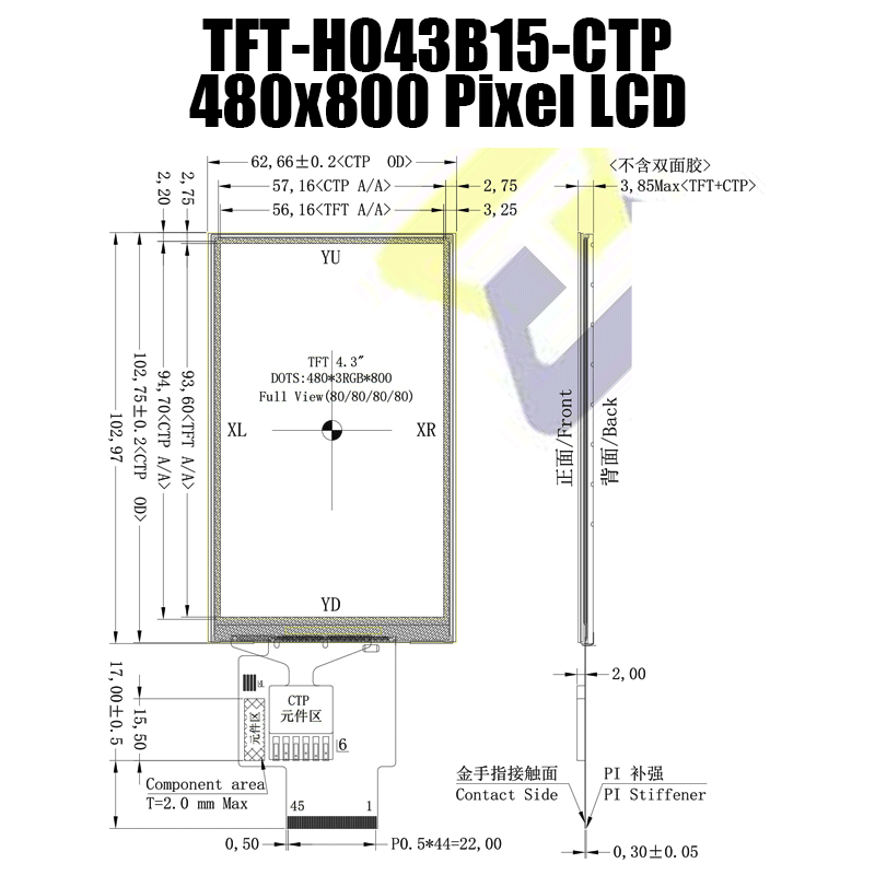4.3寸TFT IPS全視角 480X800分辨率 LCD電容觸控屏-TFT液晶模組廠(chǎng) TFT-H043B15WVIST3C45