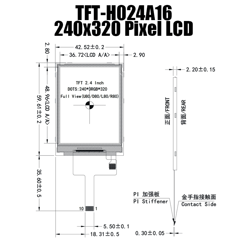 隆重推出 TFT-H024A16,這是一款 2.4 英寸 IPS 液晶工業(yè)顯示器,可提供卓越的圖像質(zhì)量和可靠的性能。 這款 TFT LCD 顯示屏分辨率為 240x320 像素,非常適合在陽(yáng)光下可讀性至關(guān)重要的工業(yè)和戶(hù)外應用。