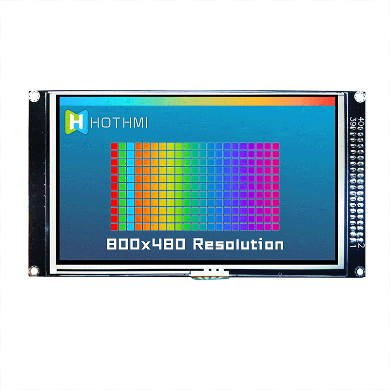 因此,鑫洪泰HOTLCD研發(fā)團隊設計一款方便客戶(hù)使用的MCU8/16位接口的5.0寸高清TFT顯示模塊 LCM-TFT050T1,具有高清800x480分辨率,高畫(huà)質(zhì),全視角,65K/262K真彩色,內置SSD1963控制器,無(wú)需外圍電路即可連接主板(可選配連接器),單電源DC3.3V供電。此款TFT模塊可選配觸摸屏并內置XPT2046電阻觸摸屏驅動(dòng)器。
