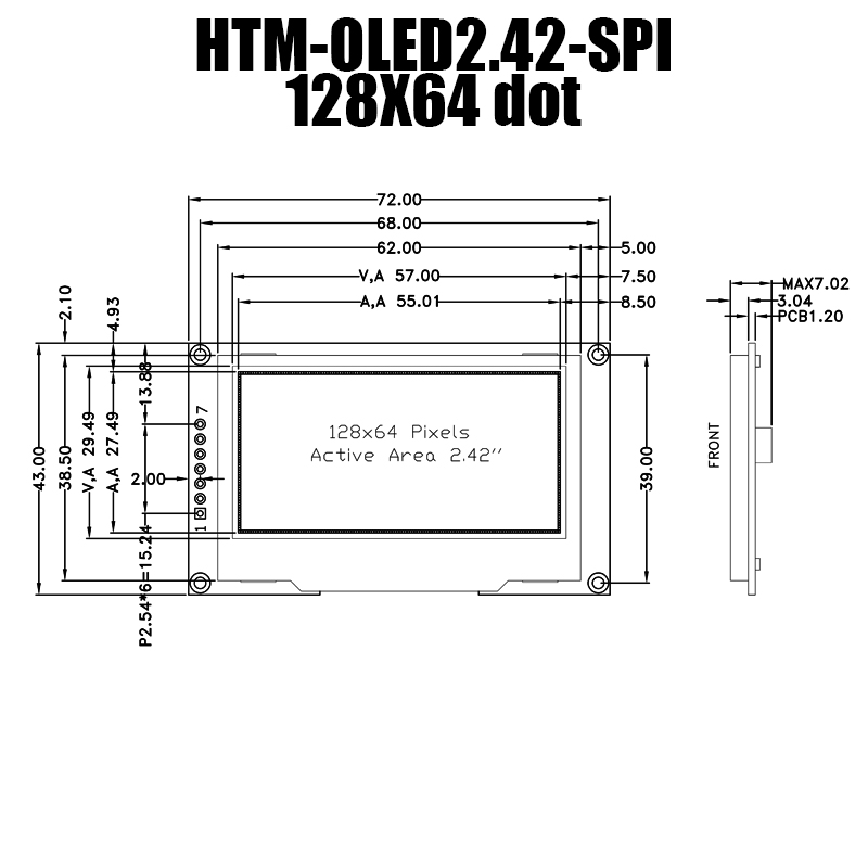 我們推出了一款2.42英寸OLED顯示屏,作為高質(zhì)量的視覺(jué)解決方案,廣泛適用于各種應用領(lǐng)域。分辨率為128x64點(diǎn),該顯示屏呈現清晰、詳細的圖像,以實(shí)現最佳觀(guān)看效果。A.A(有效顯示區域)為55.01x27.49毫米,提供充足的空間展示您的圖形和數據。