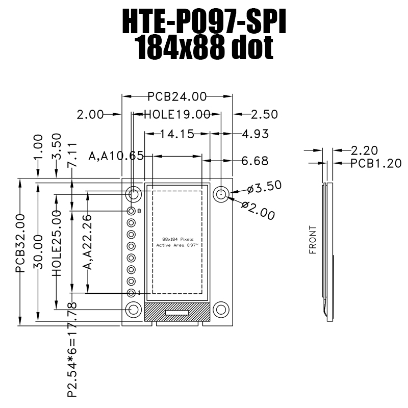0.97寸 88x184分辨率 COG SSD1680 電子紙顯示模塊帶設備控制PCB模組 HTE-P097-SPI