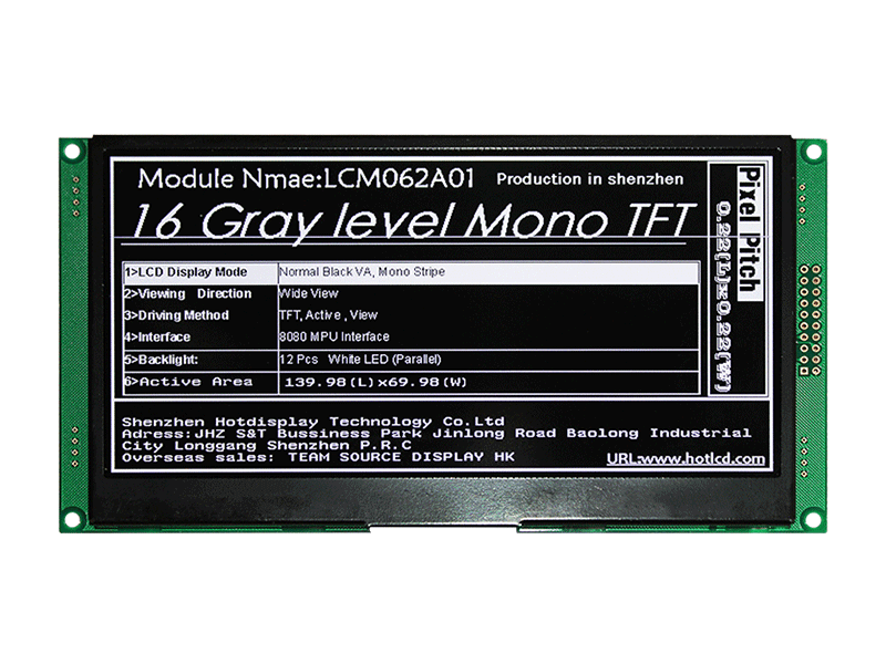 | 6.2寸MONO TFT 單色TFT液晶模組 640x320 分辨率 陽(yáng)光下可讀適應寬溫 HTM062A02 | MONO TFT | 640x320 |