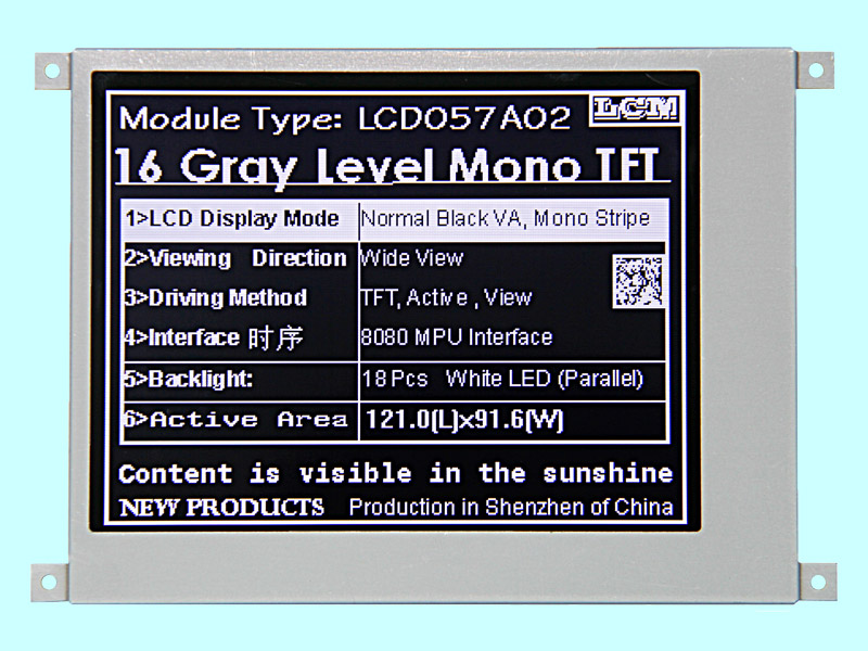| 5.7寸單色TFT/320*240分辨率/TFT-HTT057A02 | TFT單色 | 320x240 |
